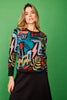 Suéter de punto con el estampado más bonito de esta temporada,su fondo negro hacen que las siluetas geométricas de colores creen una pieza que no pasará desapercibida