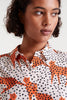 Blusa camiseta de tejido ligero con cuello de solapa y con estampado de lunares y tigres.