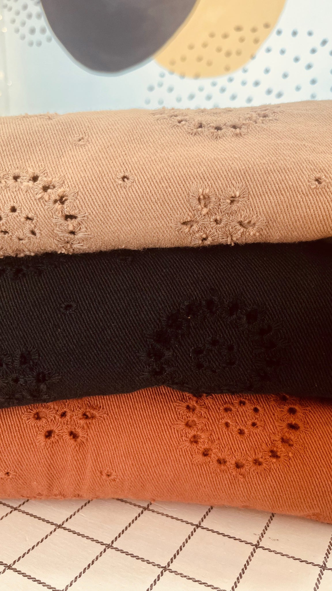 Chaqueta de tejido vaquero ligero con dibujos troquelados o perforados en forma circular talla única