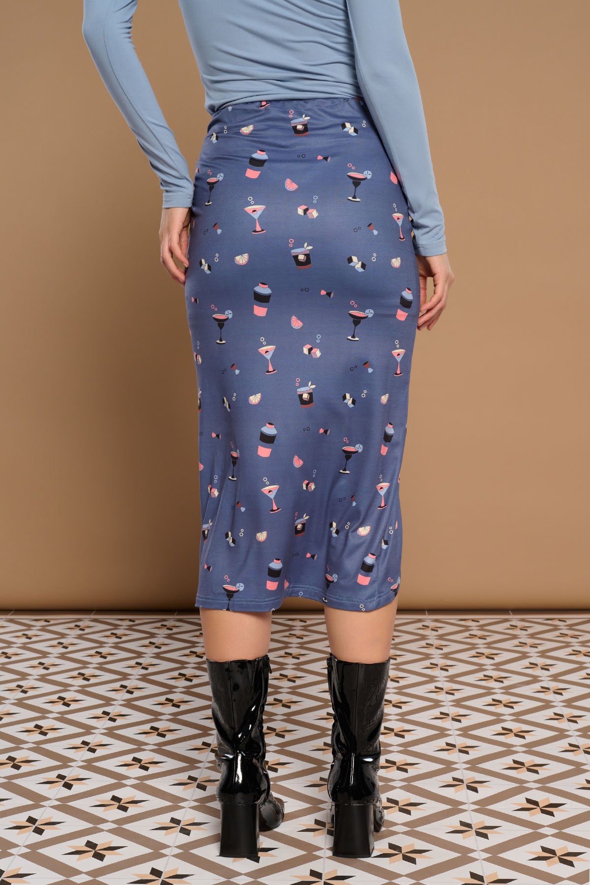 Falda con tiro alto, fruncido lateral y efecto drapeado. Estampado cóctel y tejido elástico con forro cómodo para un estilo divertido y moderno.