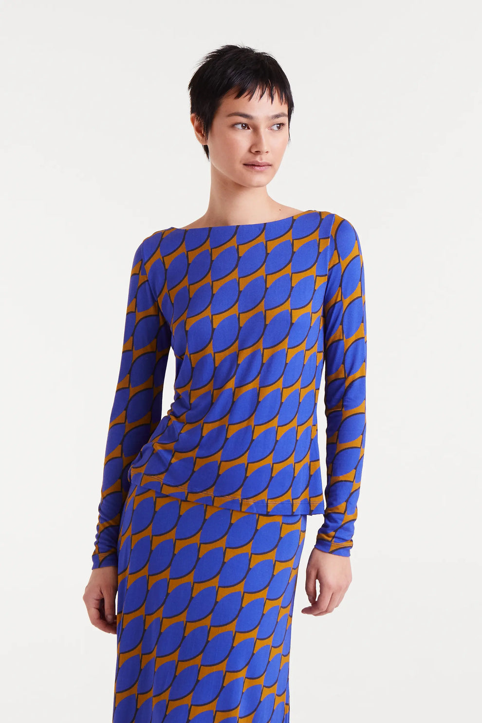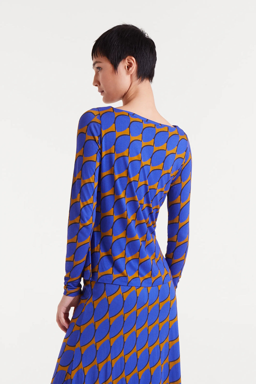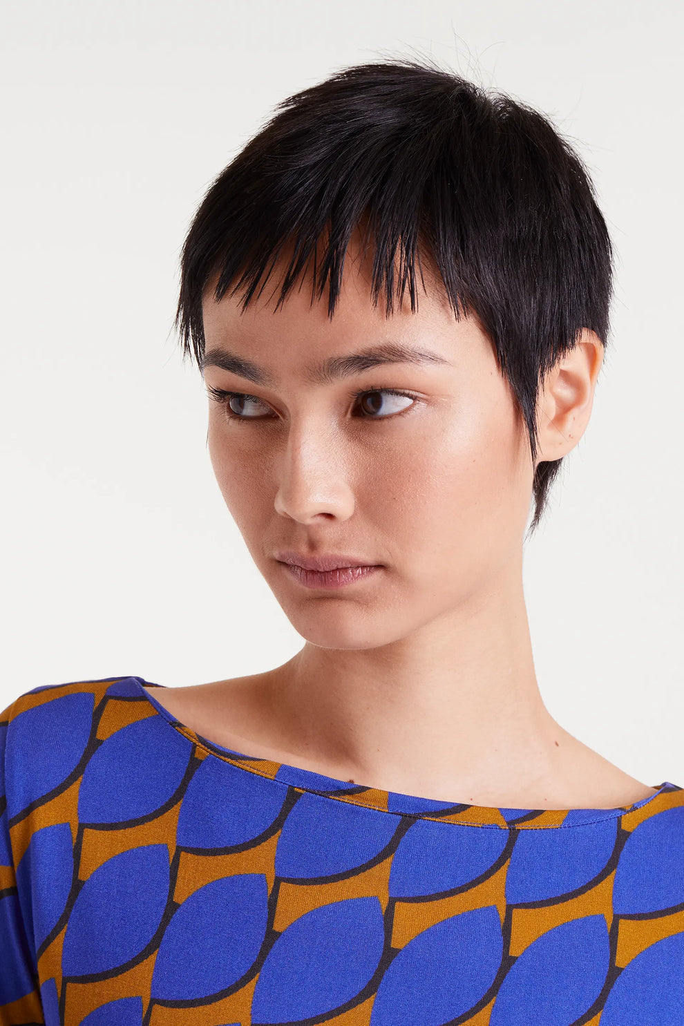 Top de cuello caja con tejido elástico de algodón y manga baja, combinado con su falda consigues un total look ideal