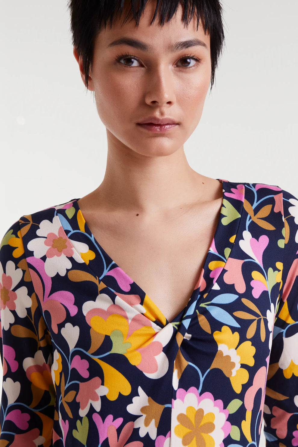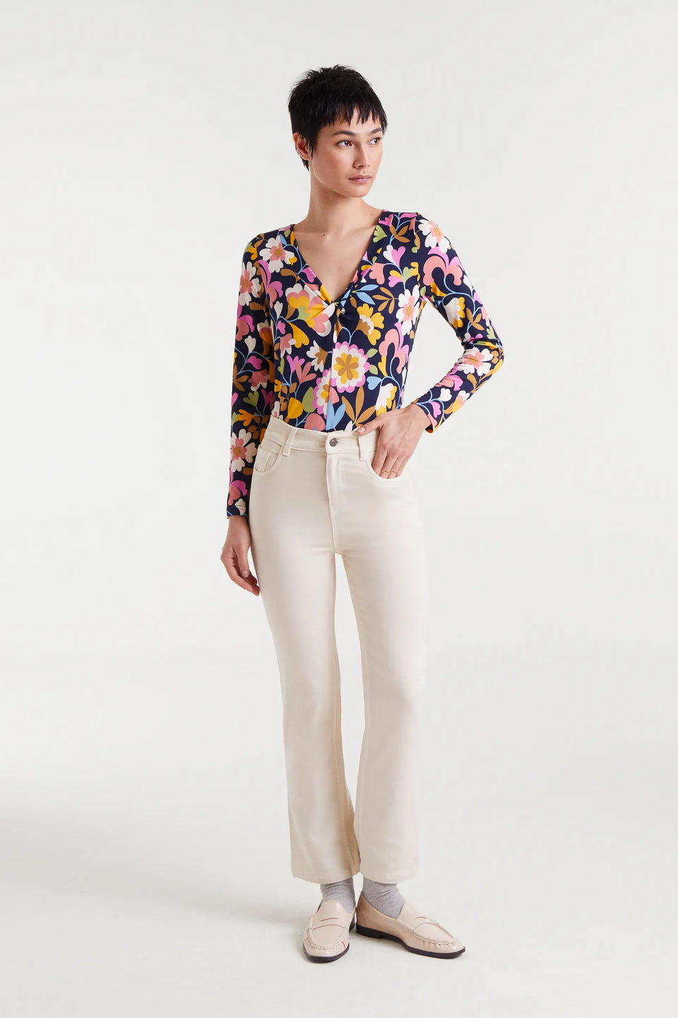 Top de tejido efecto melocotón elástico con cuello en pico y manga baja