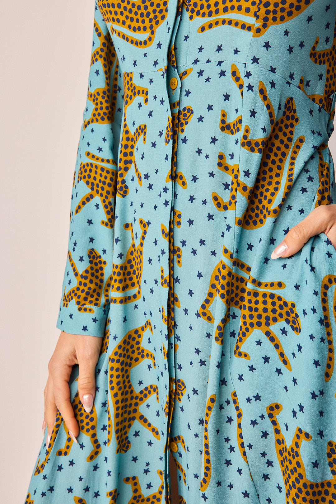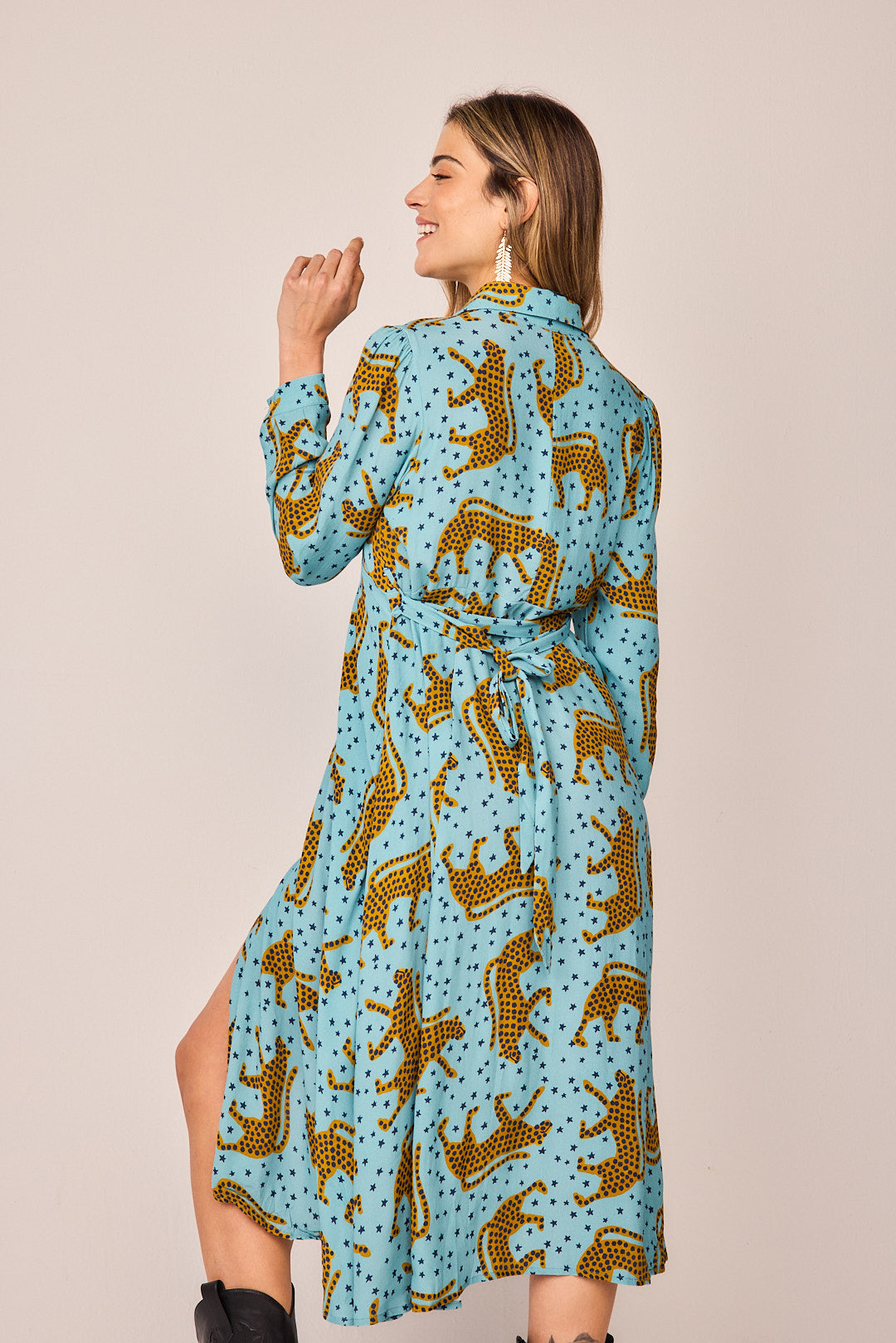 Vestido de corte camisero con estampado vibrante para llenar tu Otoño Invierno de COLOR